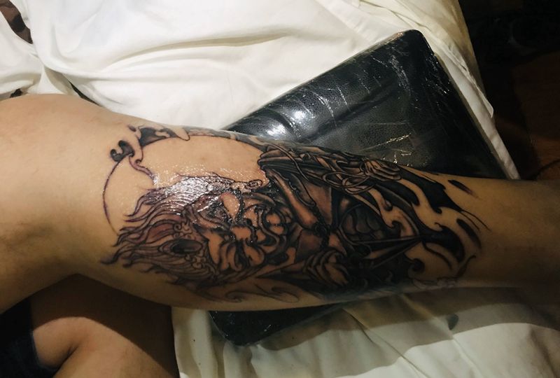 当前位置: 首页 >云南省玉溪市纹身店-彝.刺青纹身图案>大黑天未完成纹身图片_腿部新传统纹身图案