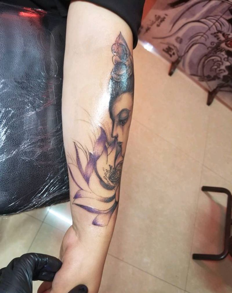落泪艺妓纹身图片_手臂新传统纹身图案