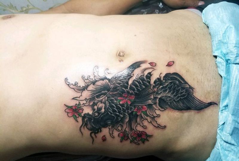 盖巴痕纹身图片_腹部新传统纹身图案