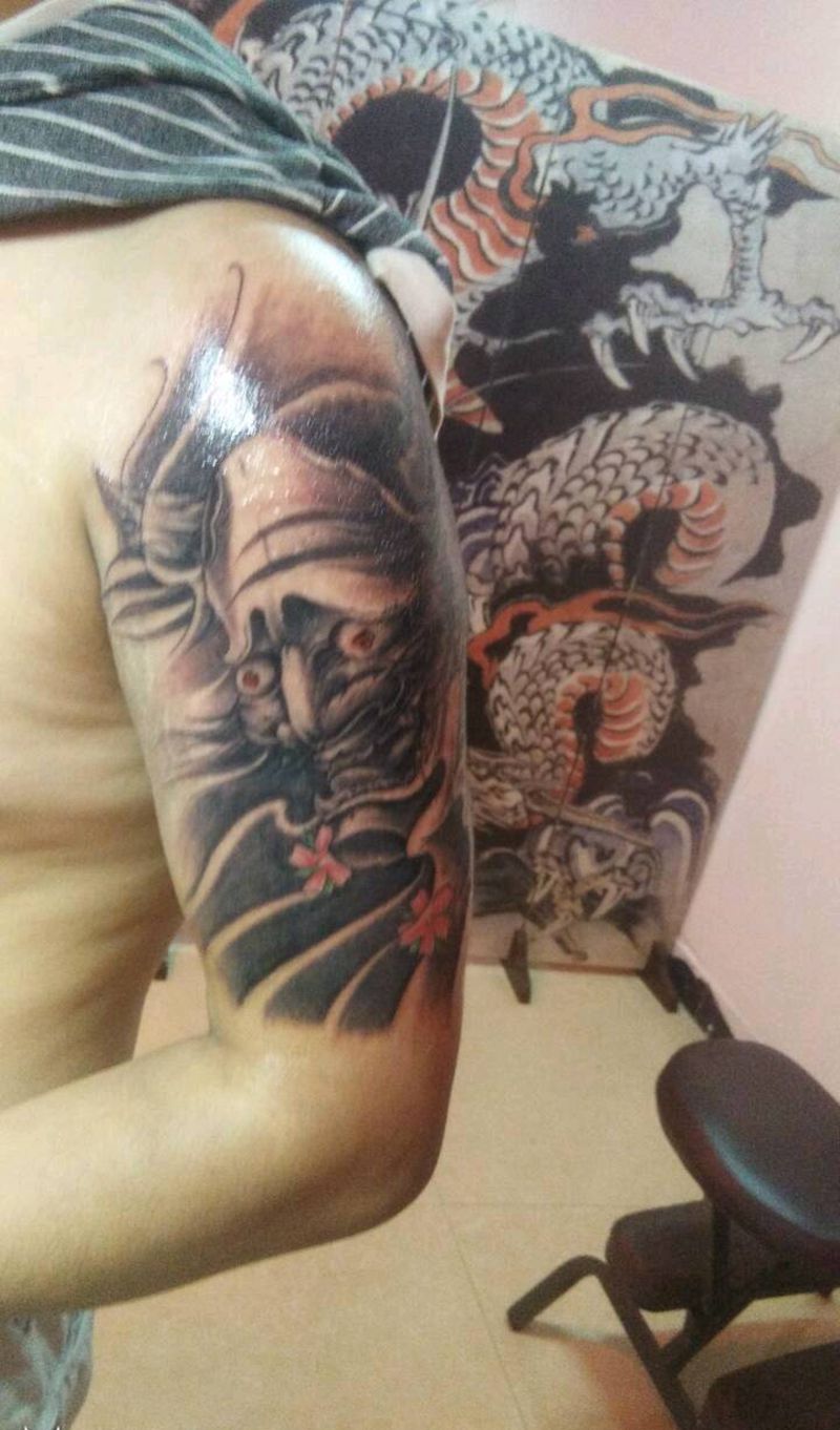 般若纹身图片_肩部新传统纹身图案