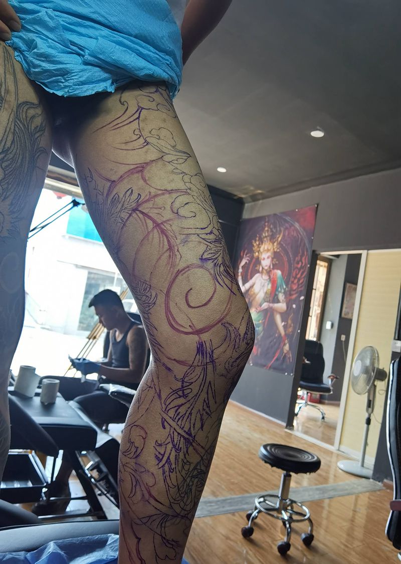 当前位置: 首页 >云南省玉溪市纹身店-彝.刺青纹身图案>浴火重生纹身图片_腿部新传统纹身图案