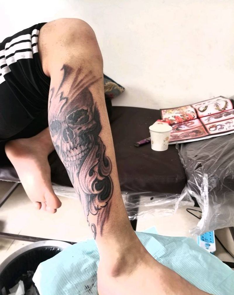 当前位置: 首页 >云南省玉溪市纹身店-彝.刺青纹身图案>骷髅头纹身图片_腿部欧美写实纹身图案