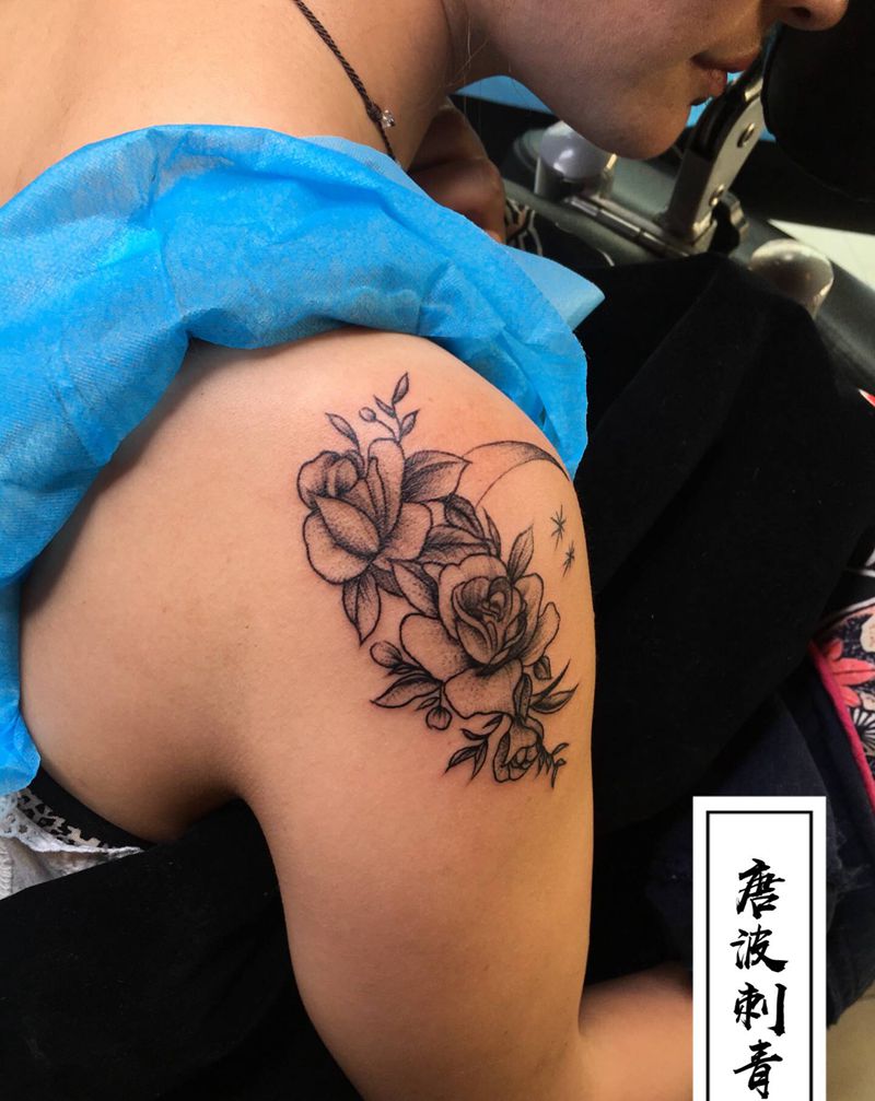 素花纹身图片_肩部点刺遮盖胎记纹身图案