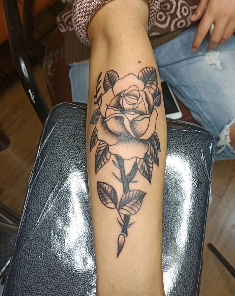 玫瑰纹身图片_手臂Old School纹身图案