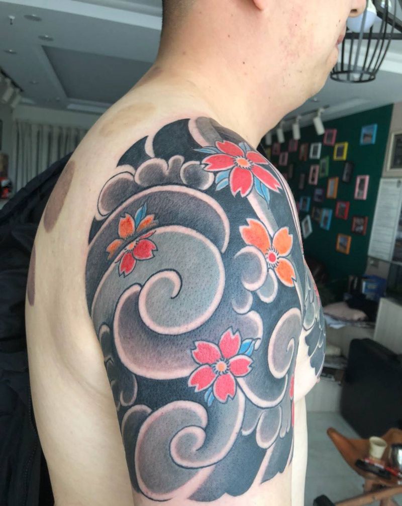 • 纹身吧推荐的披肩图腾半胛纹身图案作品展示