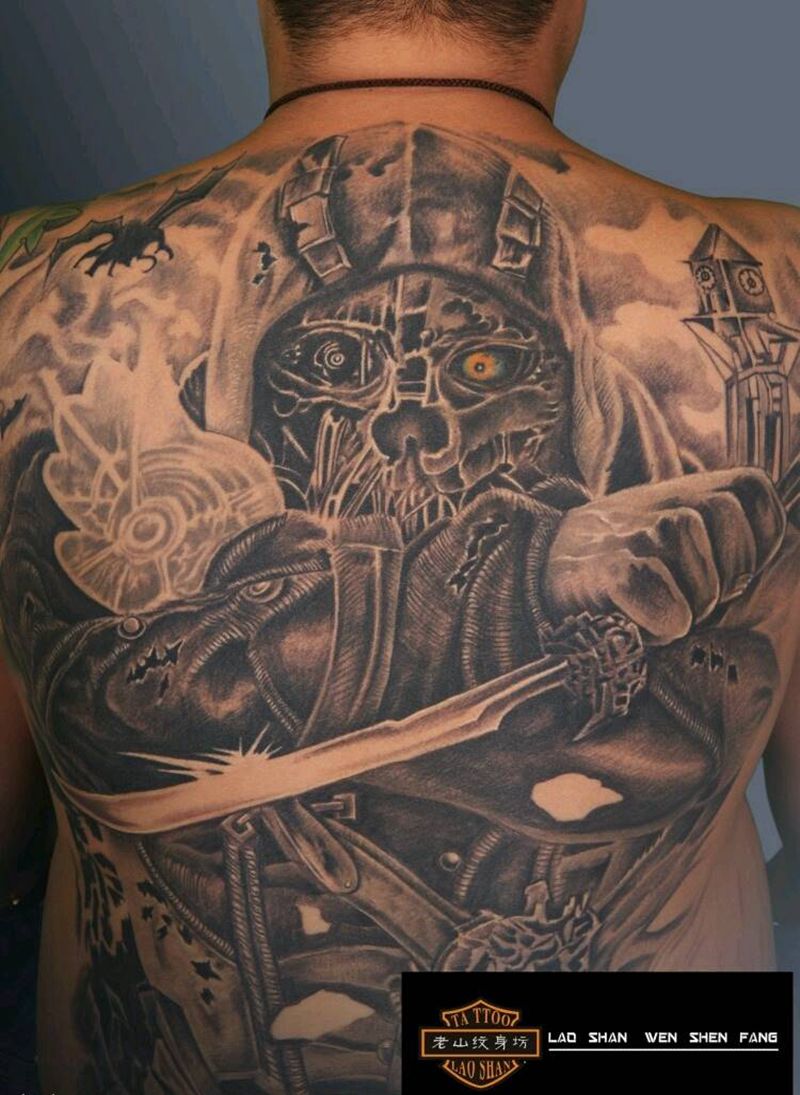 黑灰满背纹身图案