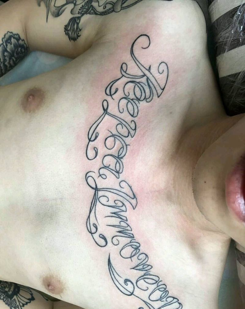 • T关于私处得爱!纹身图片_成品腹部清新字符图腾纹身图案