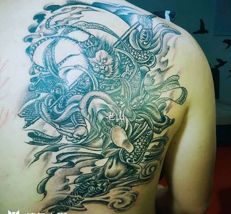• T云龙九郎纹身图片_背部老传统云龙九郎纹身图案