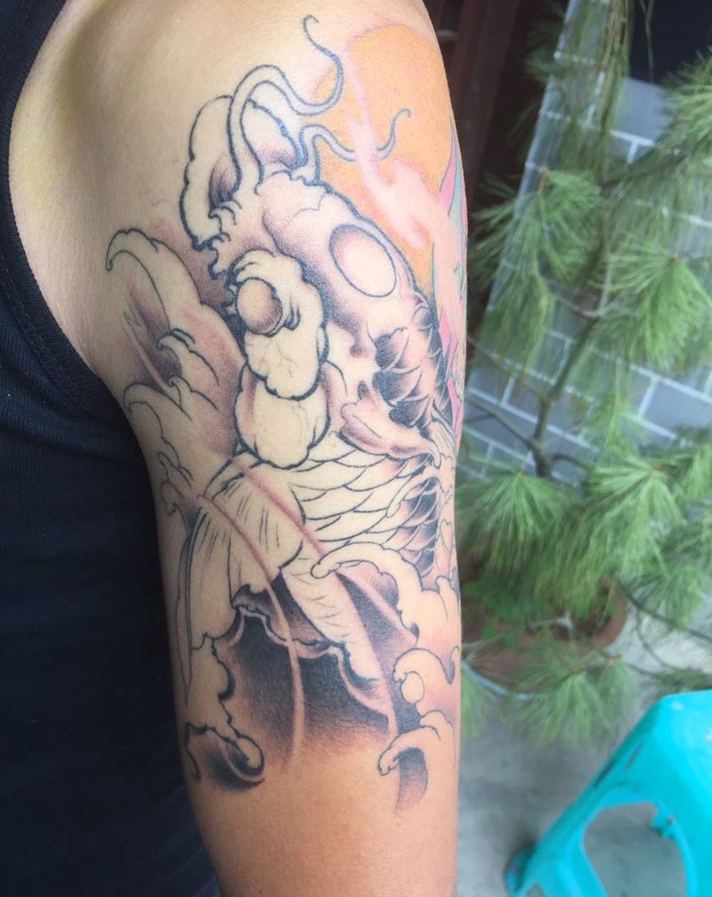 大臂鲤鱼未完纹身图片
