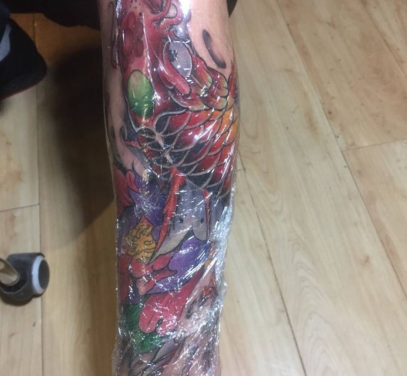 • T网红王老大花腿龙纹身图片_腿部新传统纹身图案