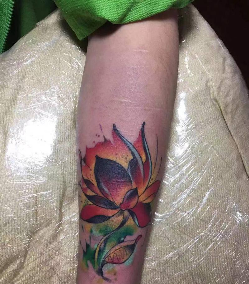 一组15张莲花纹身手