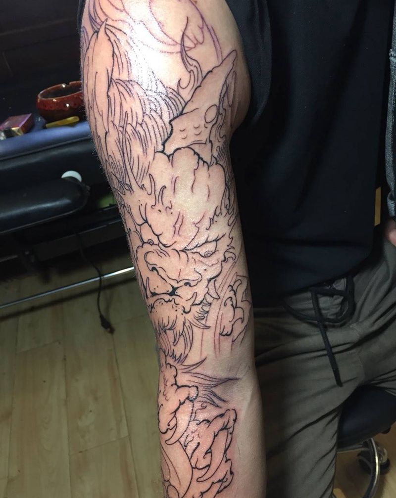 • T网红王老大花腿龙纹身图片_腿部新传统纹身图案