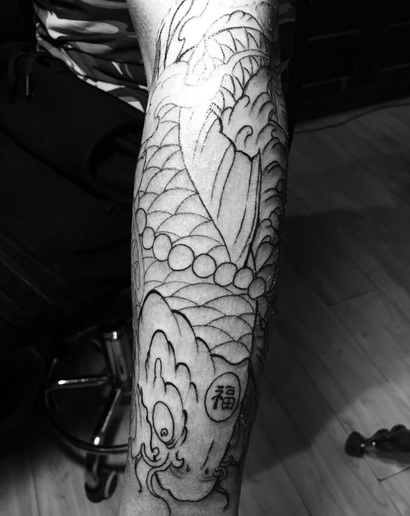 • T网红王老大花腿龙纹身图片_腿部新传统纹身图案