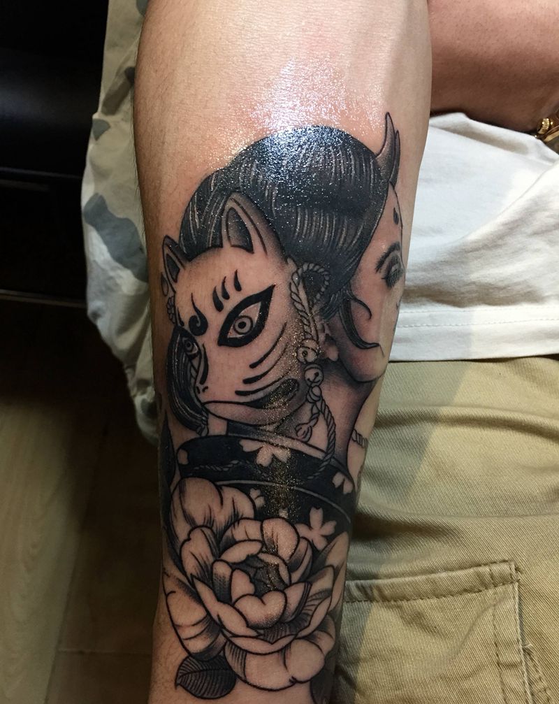 当前位置: 首页 >云南省昭通市纹身店-T-刺青纹身图案>面具女孩纹身图片_手臂新传统纹身图案