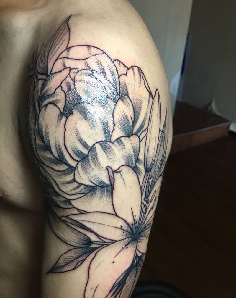 • 女性大花胸纹身_43张霸气漂亮的女性大花胸纹身图案作品