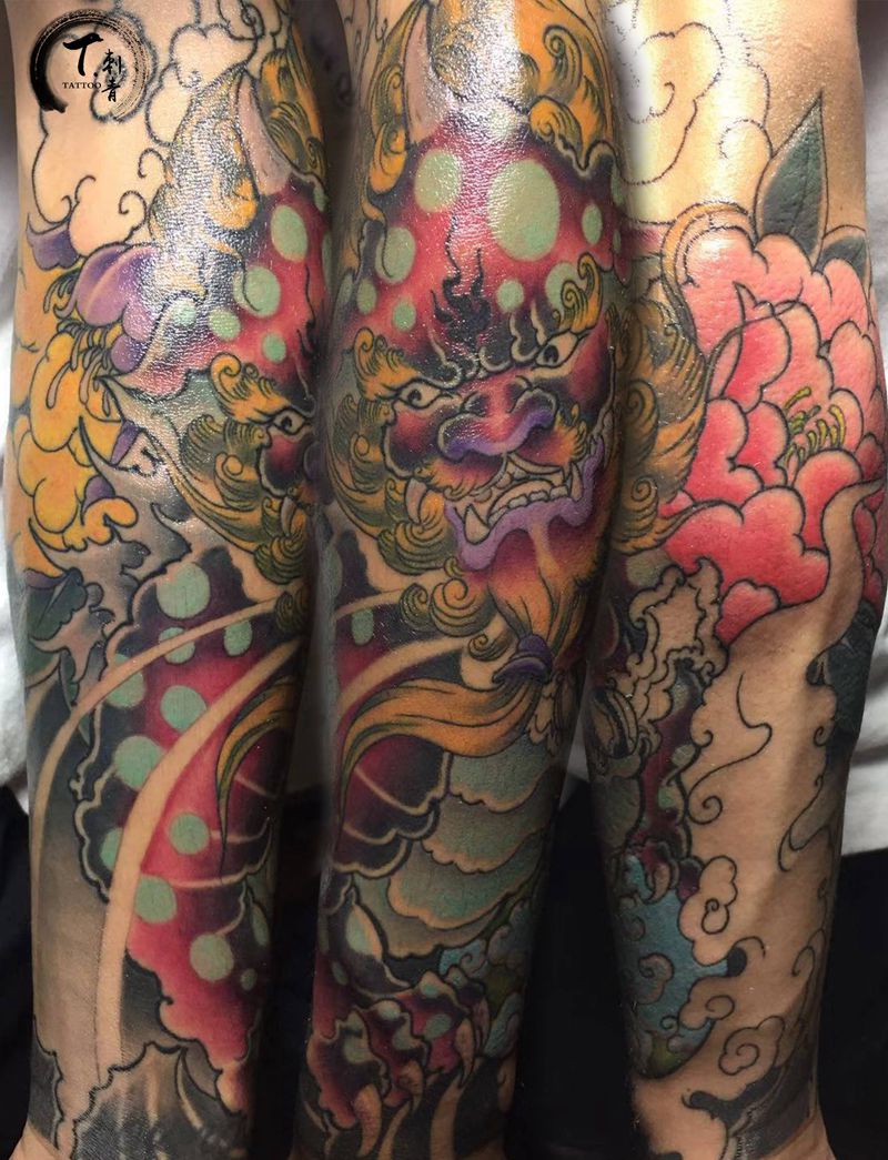 当前位置: 首页 >云南省昭通市纹身店-T-刺青纹身图案>唐狮纹身图片_手臂新传统纹身图案