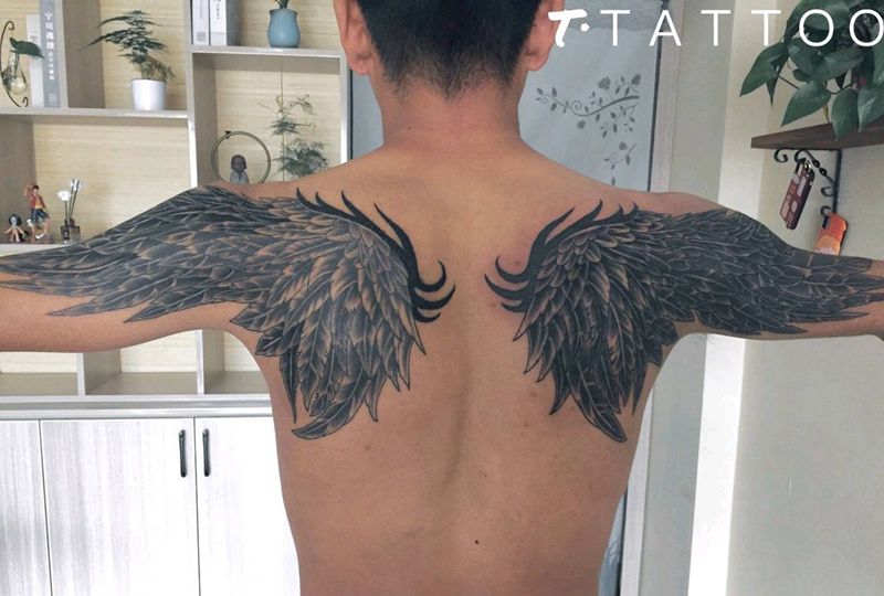 当前位置: 首页 >云南省昭通市纹身店-T-刺青纹身图案>翅膀纹身图片_背部肩部新传统翅膀纹身图案