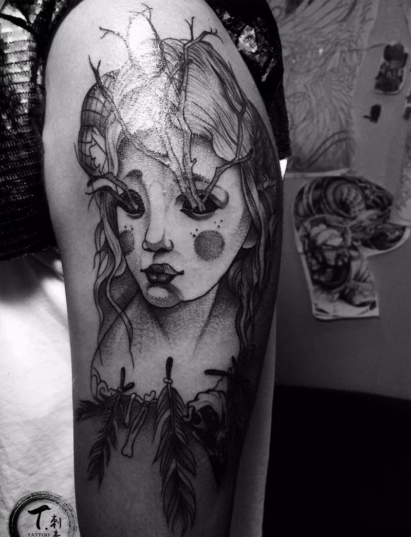 • 纹身吧推荐的披肩图腾半胛纹身图案作品展示