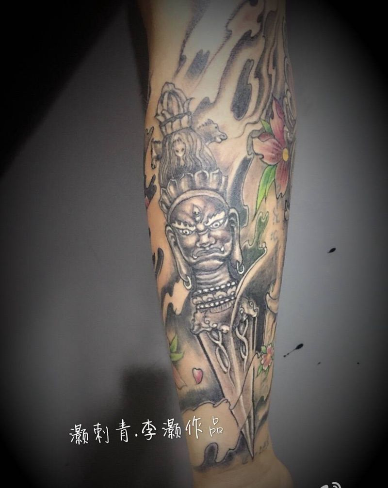 当前位置: 首页 >云南省玉溪市纹身店-灏刺青纹身工作室纹身图案>象神、降魔杵包小臂纹身图片