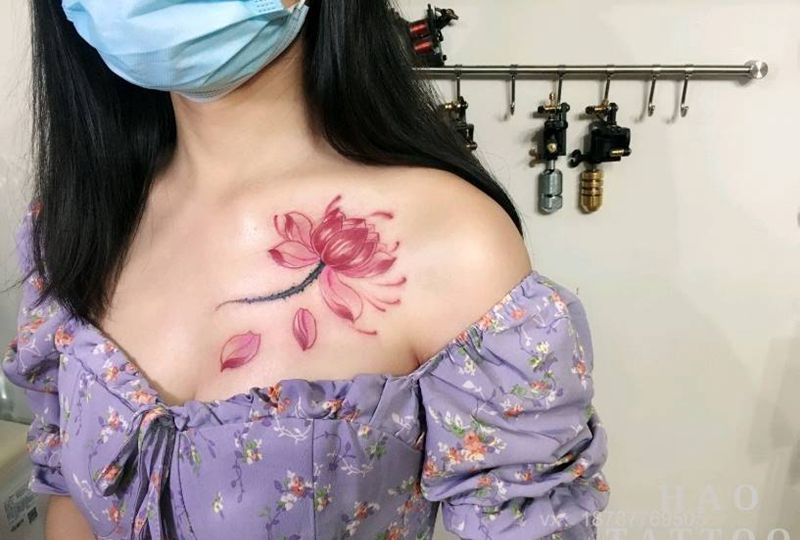 当前位置: 首页 >云南省玉溪市纹身店-灏刺青纹身工作室纹身图案>荷花纹身图片_肩部水彩水墨纹身图案