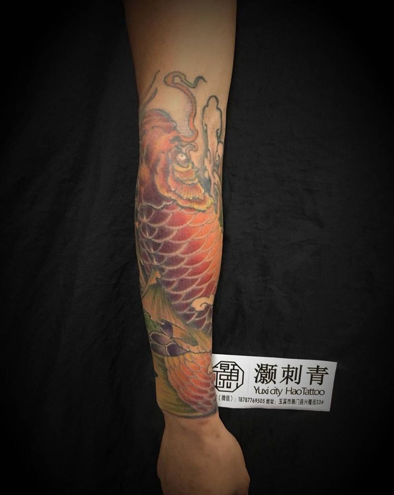 当前位置: 首页 >云南省玉溪市纹身店-灏刺青纹身工作室纹身图案>锦鲤纹身图片_传统手臂动物成品纹身图案