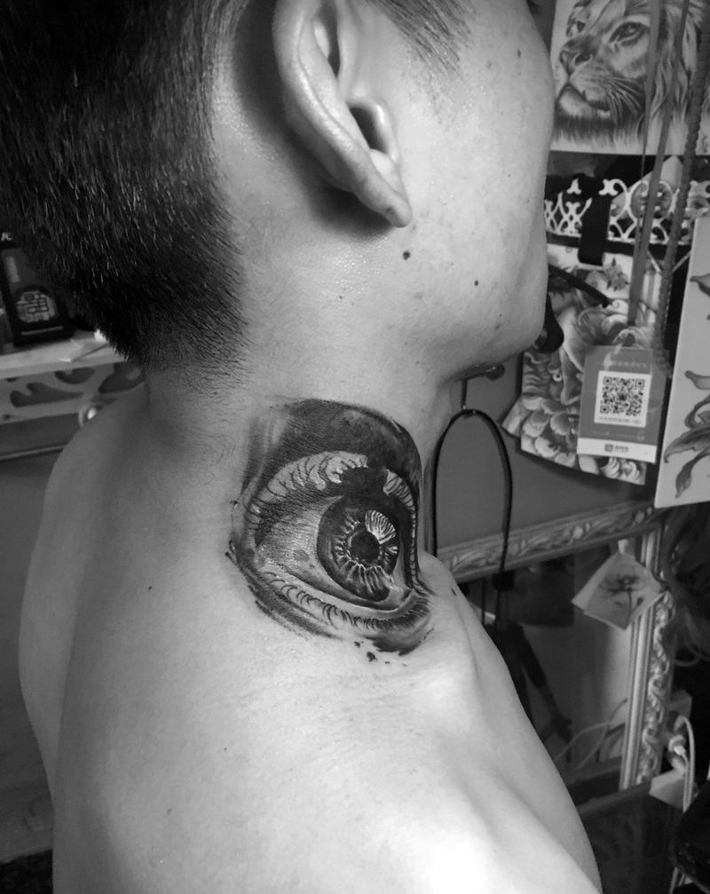 遮盖纹身图片_颈部欧美纹身图案