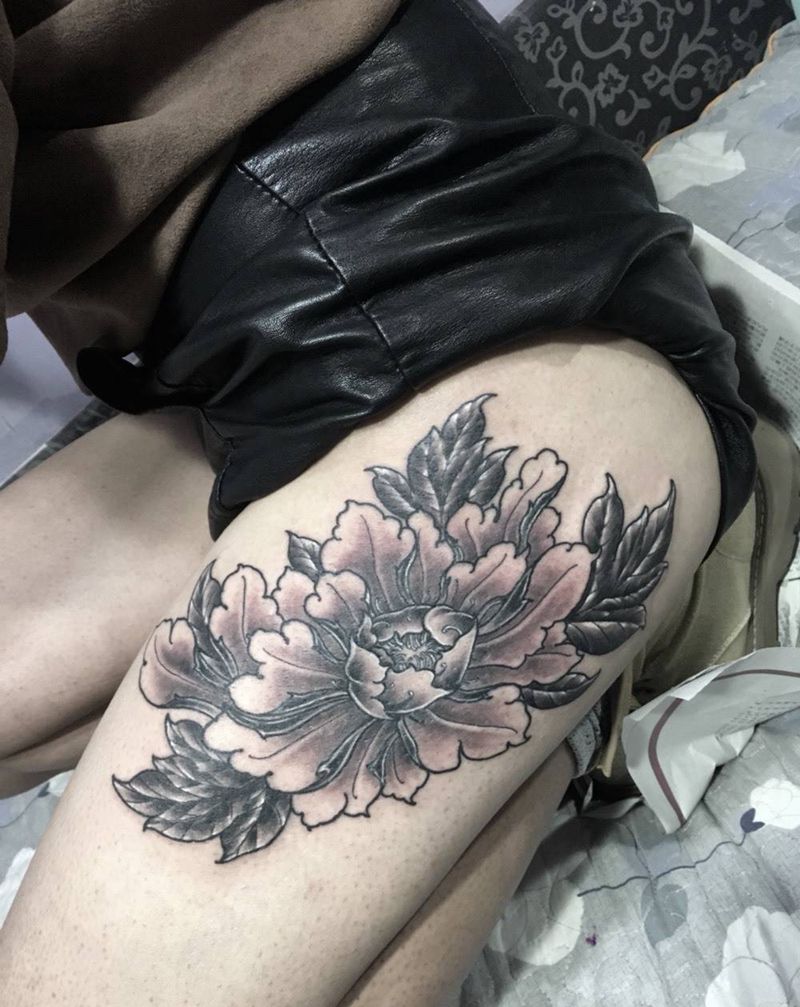 牡丹纹身图片_传统腿部植物原创纹身图案