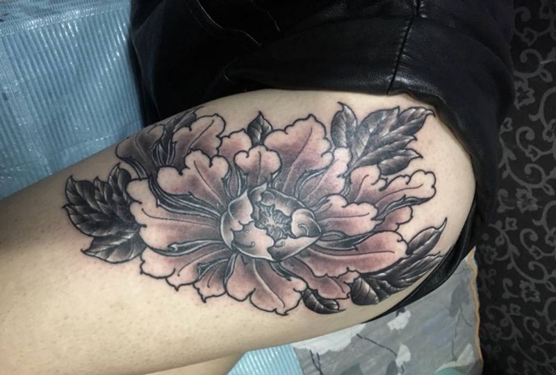 牡丹纹身图片_传统腿部植物原创纹身图案