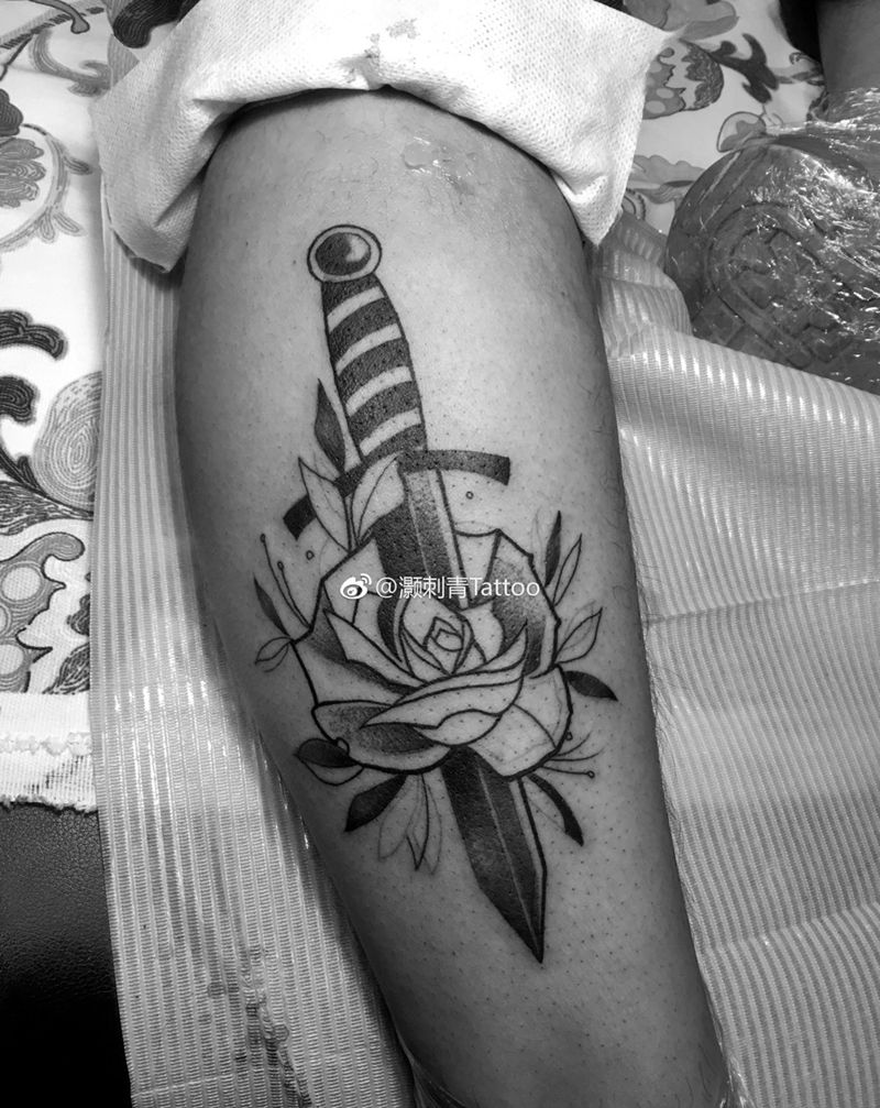 当前位置: 首页 >云南省玉溪市纹身店-灏刺青纹身工作室纹身图案>school匕首纹身图片_脚部Old School纹身图案