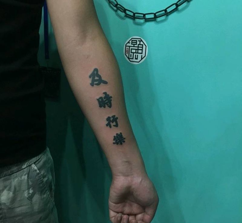 当前位置: 首页 >云南省玉溪市纹身店-灏刺青纹身工作室纹身图案>及时行乐纹身图片_手臂纹身图案