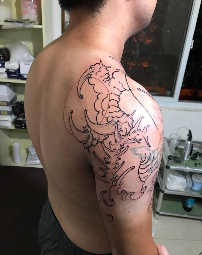 当前位置: 首页 >云南省楚雄彝族自治州纹身店-江一刺青纹身图案>遮盖!大龙原创设计!未完成纹身图片
