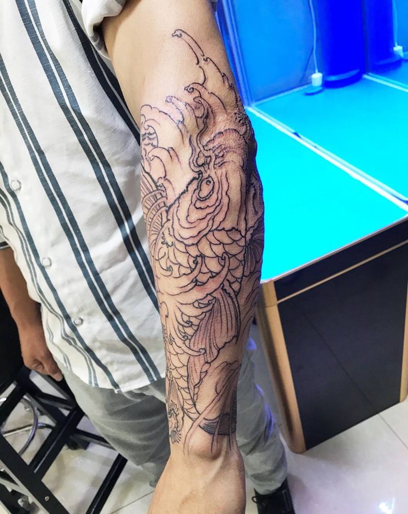 • T网红王老大花腿龙纹身图片_腿部新传统纹身图案