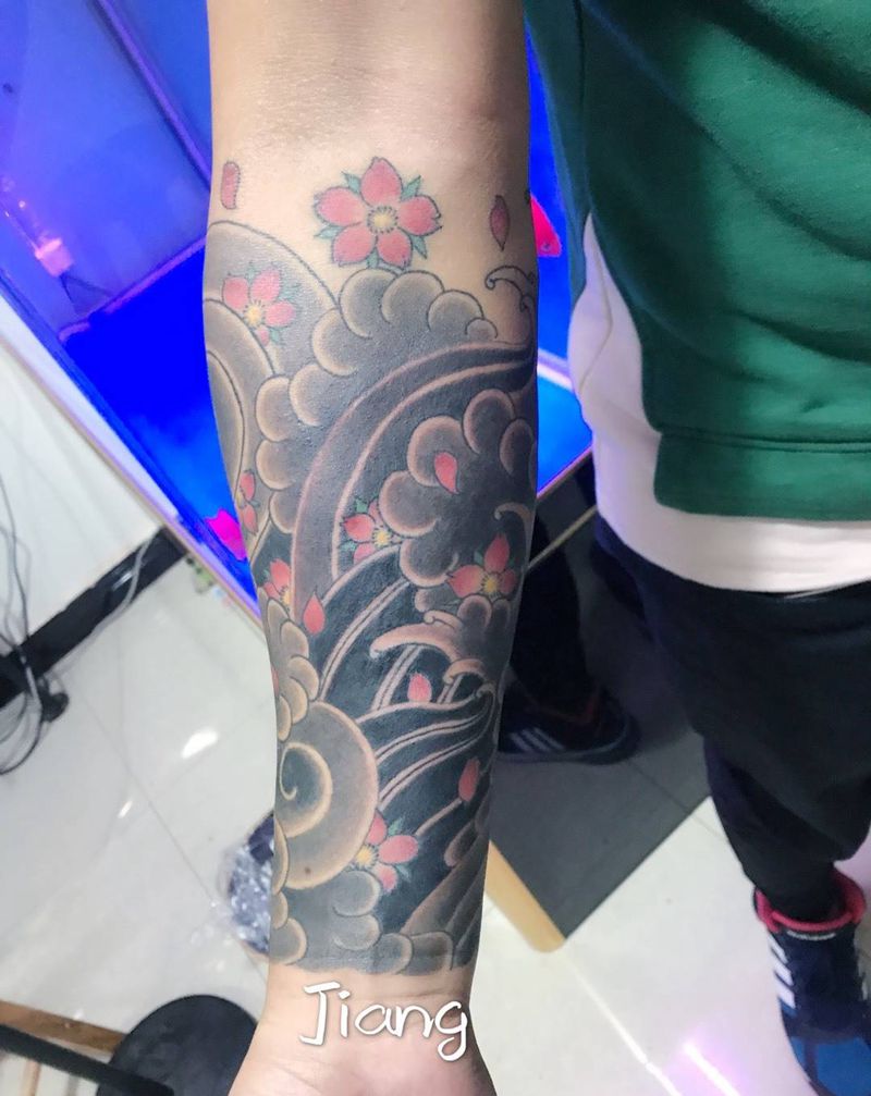 当前位置: 首页 >云南省楚雄彝族自治州纹身店-江一刺青纹身图案>日式浪花包小臂纹身图片