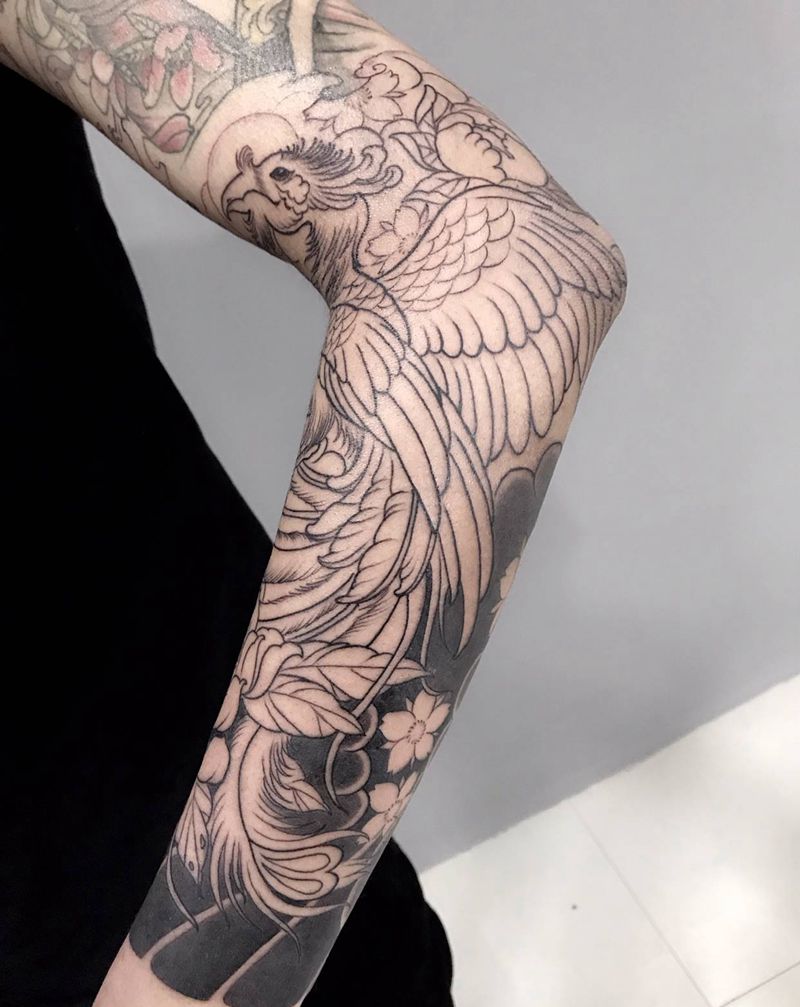 凤凰包小臂纹身图片_新传统凤凰纹身图案