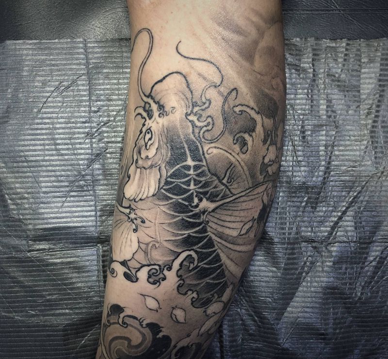 当前位置: 首页 >云南省楚雄彝族自治州纹身店-江一刺青纹身图案>鲤鱼纹身图片_手臂腿部新传统鲤鱼纹身图案