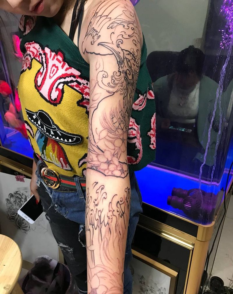 当前位置: 首页 >云南省楚雄彝族自治州纹身店-江一刺青纹身图案>凤凰花臂,纹身图片