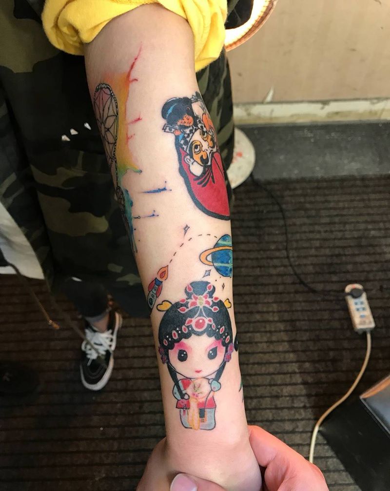 当前位置: 首页 >云南省楚雄彝族自治州纹身店-江一刺青纹身图案>拼接花臂,纹身图片