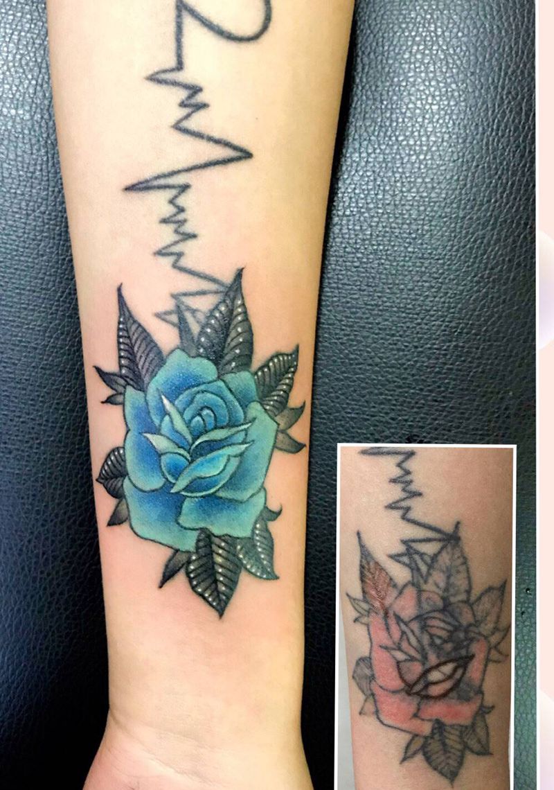 当前位置: 首页 >云南省楚雄彝族自治州纹身店-江一刺青纹身图案>玫瑰遮盖纹身图片_手臂手部New SchoolOld School纹身图案