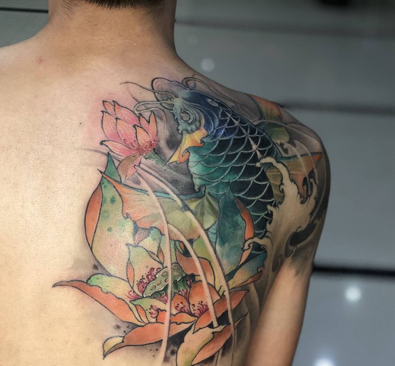 当前位置: 首页 >云南省楚雄彝族自治州纹身店-江一刺青纹身图案>鲤鱼遮盖,纹身图片_新传统纹身图案