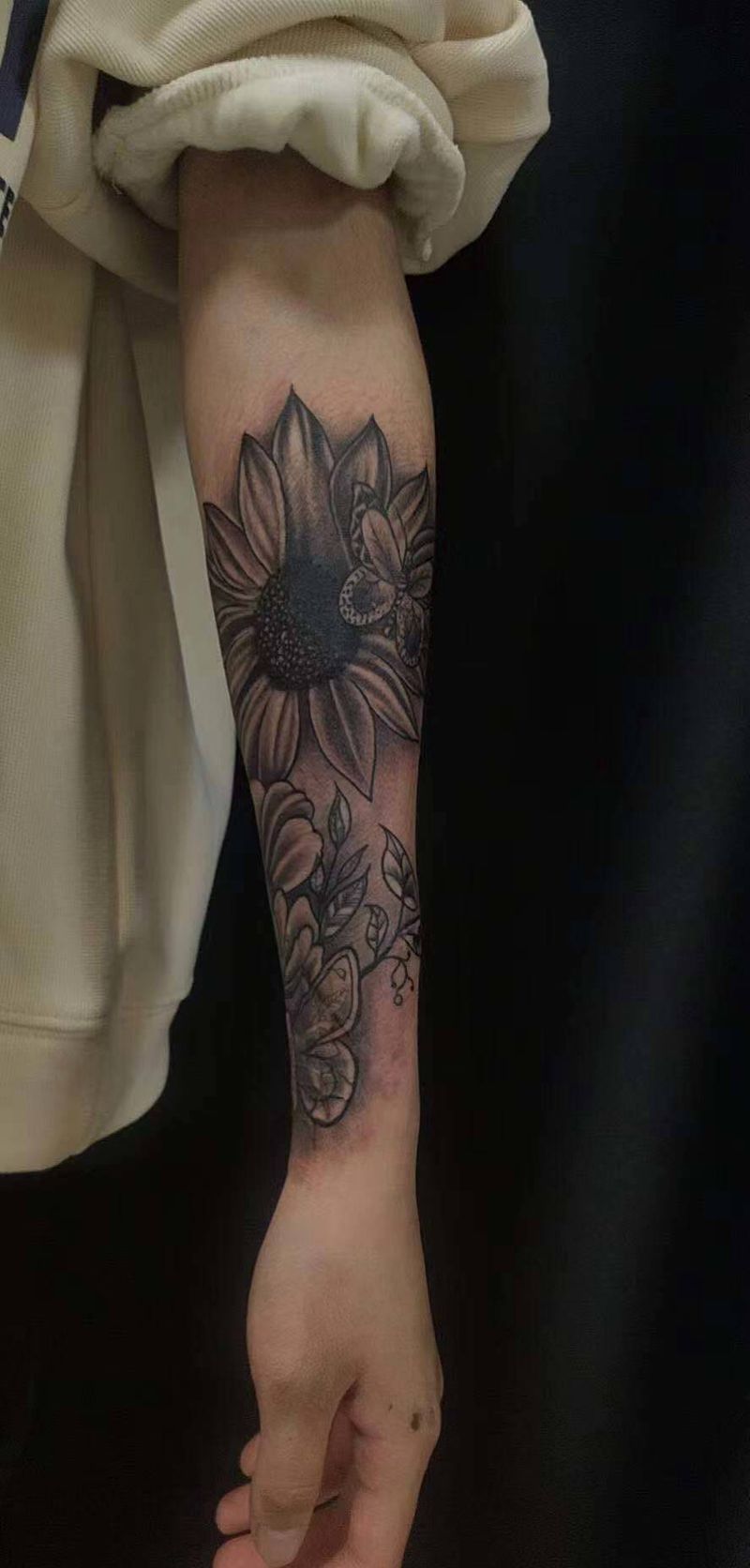 当前位置: 首页 >云南省保山市纹身店-古龙纹身总部纹身图案>遮盖纹身图片_手臂欧美写实素花纹身图案