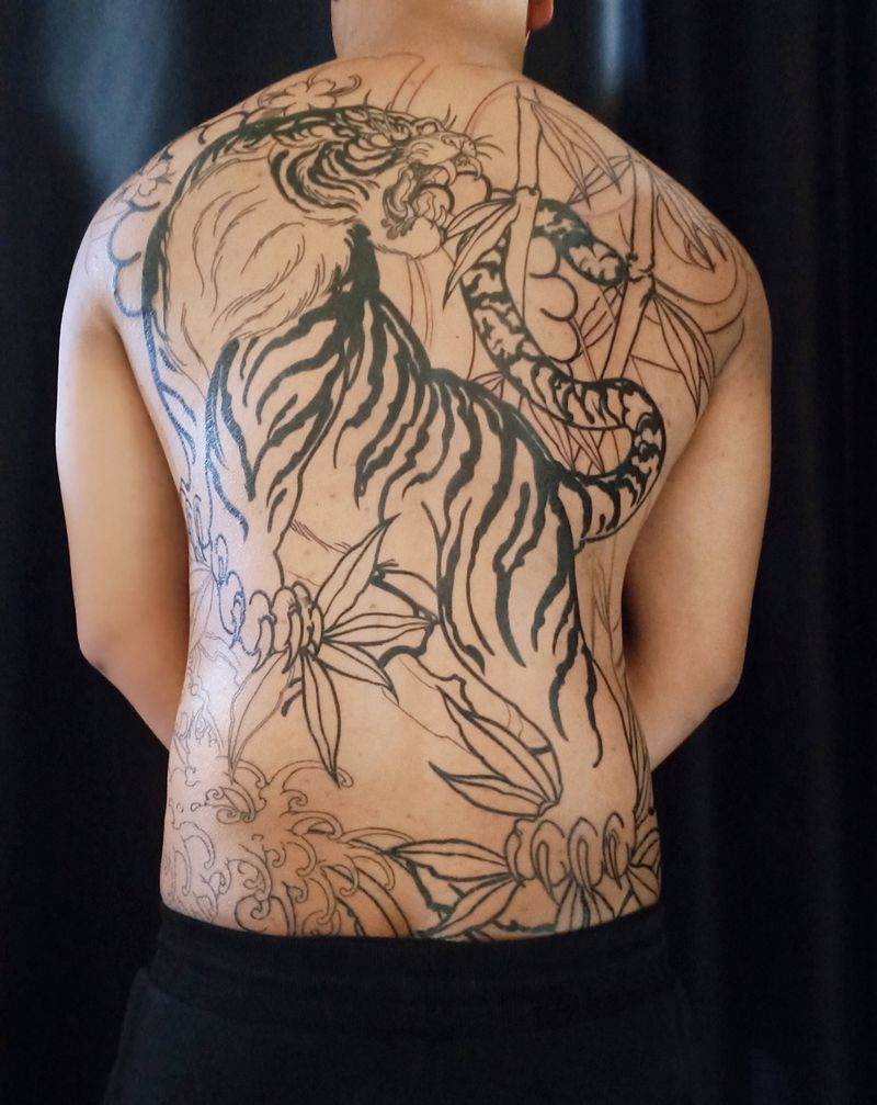当前位置: 首页 >云南省保山市纹身店-古龙纹身总部纹身图案>虎纹身图片_背部新传统老传统纹身图案