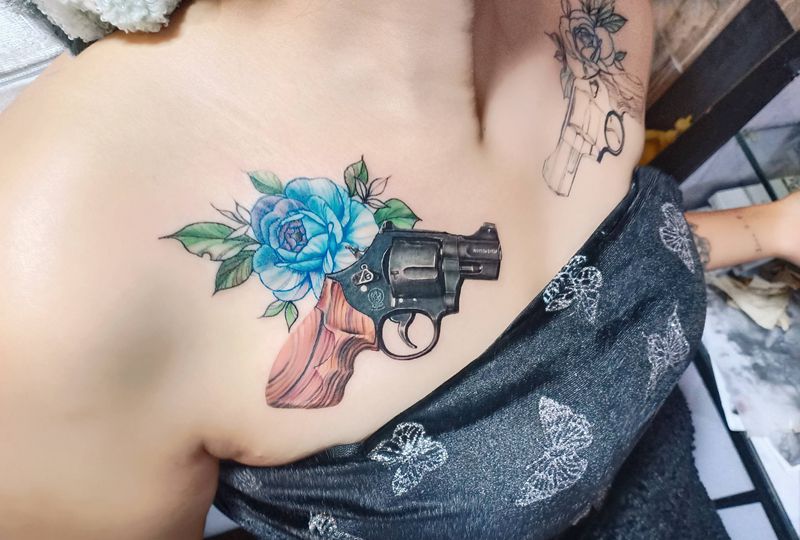 当前位置: 首页 >云南省保山市纹身店-古龙纹身总部纹身图案>手枪