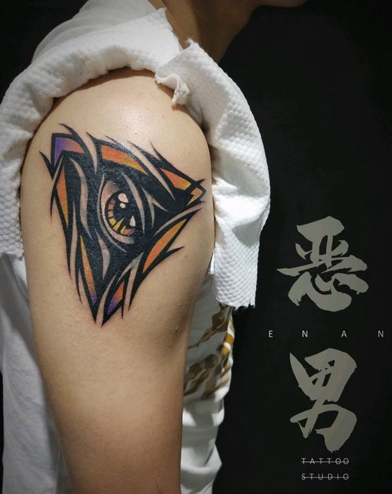 当前位置: 首页 >云南省保山市纹身店-XX刺青纹身图案>遮盖纹身图片_手臂New School几何眼睛三角上帝纹身图案