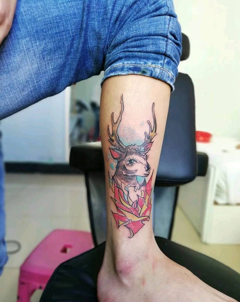 • T包小腿吹火男+阿多福纹身图片_腿部老传统新传统吹火男阿