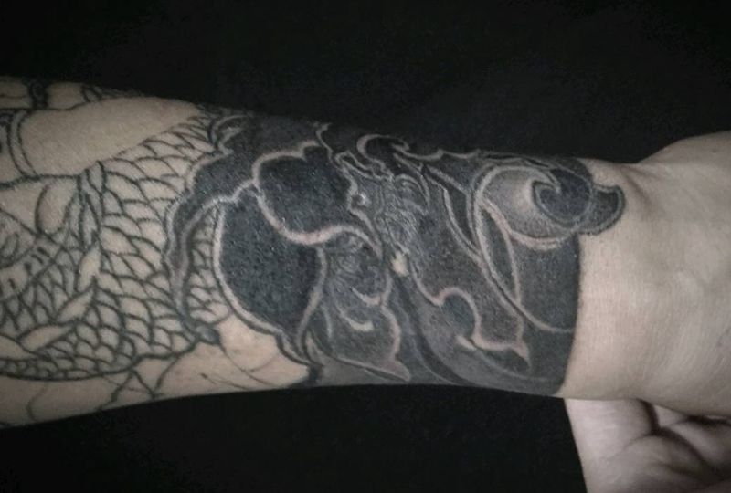 当前位置: 首页 >云南省保山市纹身店-XX刺青纹身图案>传统 遮盖纹身图片_手臂新传统浪花龙荷花纹身图案