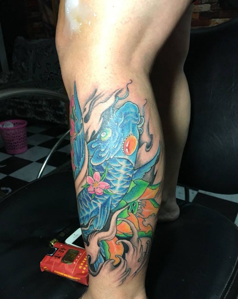 当前位置: 首页 >云南省红河哈尼族彝族自治州纹身店-蒙自市 西门刺青纹身图案>重彩招财鱼纹身图片