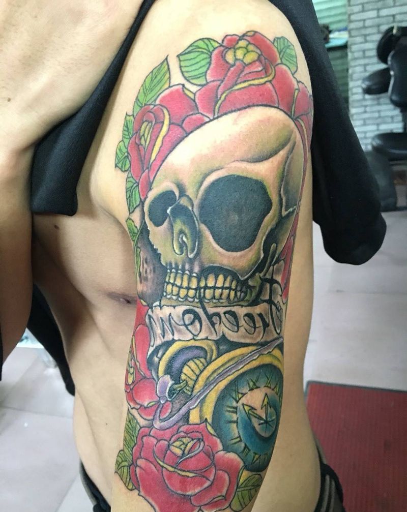 当前位置: 首页 >云南省红河哈尼族彝族自治州纹身店-蒙自市 西门刺青纹身图案>欧美传统骷髅印花纹身图片
