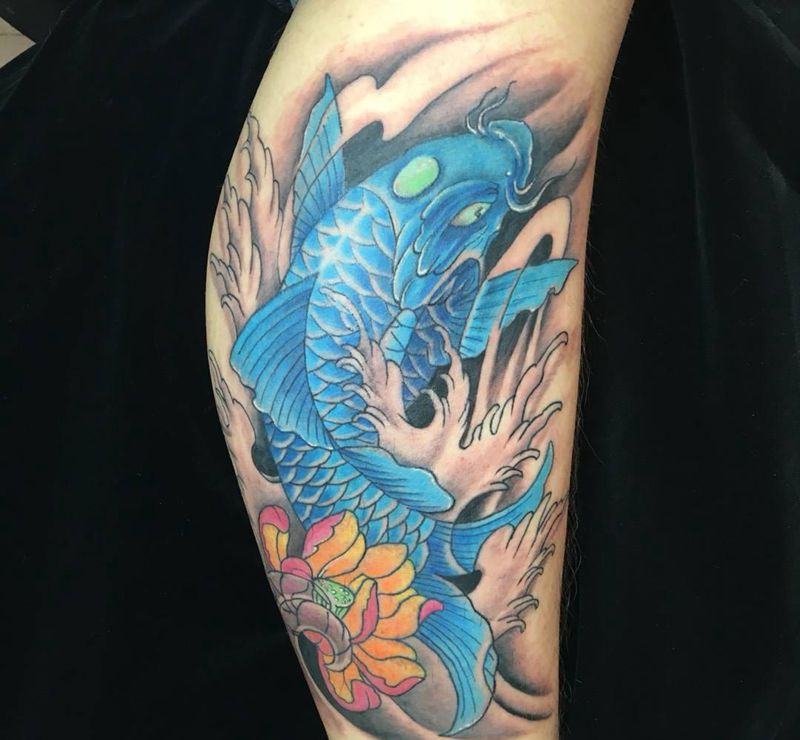 • T网红王老大花腿龙纹身图片_腿部新传统纹身图案