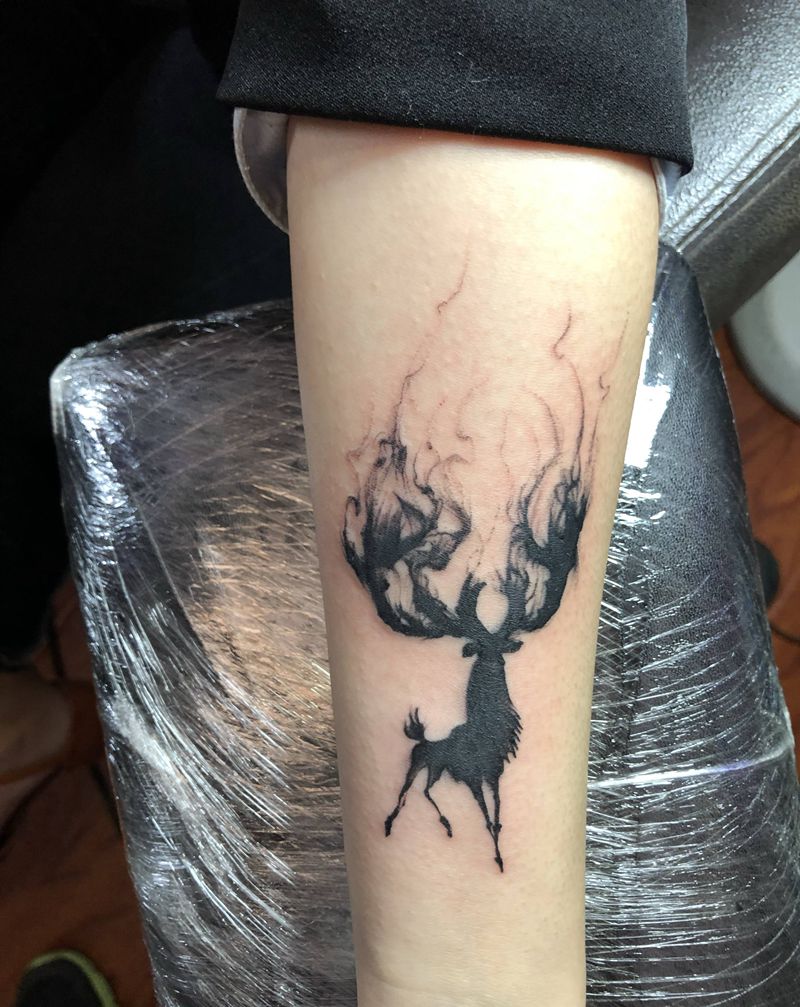 当前位置: 首页 >云南省红河哈尼族彝族自治州纹身店-蒙自市 西门刺青纹身图案>水墨麋鹿纹身图片_手臂水墨纹身图案