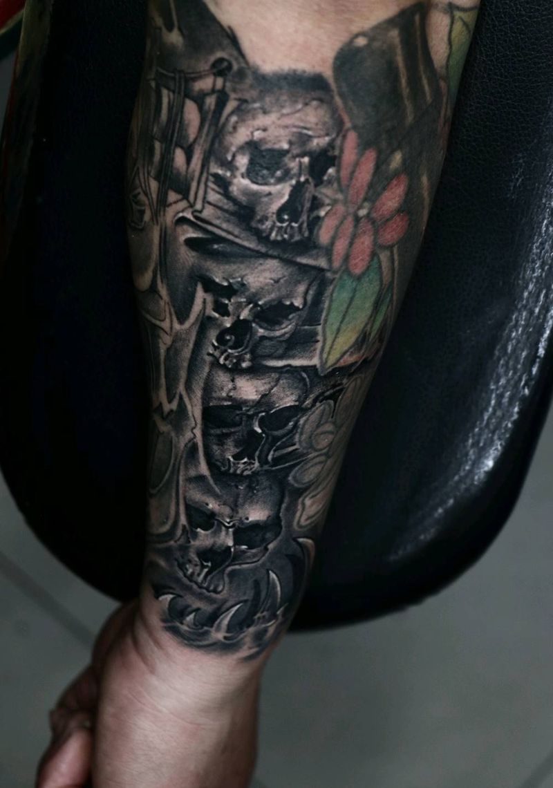 当前位置: 首页 >云南省丽江市纹身店-丽江無盒刺青工作室纹身图案>手绘骷髅纹身图片_手部手臂欧美写实纹身图案